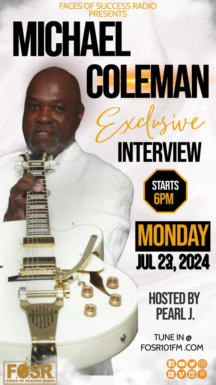 Michael Coleman. The interview will be hosted by the charismatic radio celebrity, Pearl J, on Monday, July 22, 2024, at 7pm PST.